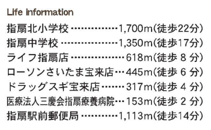 指扇北小学校 徒歩22分 指扇中学校 徒歩17分 |