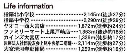 指扇北小学校 徒歩27分 指扇中学校 徒歩29分 |
