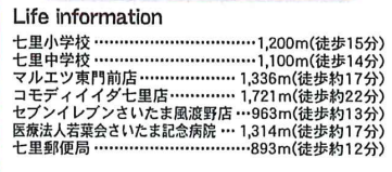 周辺環境 七里小学校 徒歩18分 七里中学校 徒歩14分